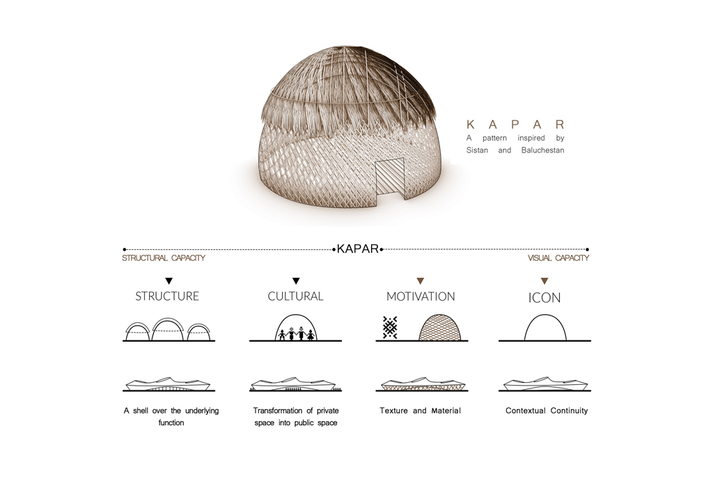 If the city gateway transforms passage into an experiential presence, this accommodation elevates that presence further, turning it into a memory. Inspired by the ingenuity of the nomadic architecture of Sistan and the organic forms of sand dunes, the project seeks to create a “contemporary caravanserai.” The core idea reinterprets the concepts of kapar, tent, and central courtyard—archetypal forms of regional dwelling—where today’s traveler not only rests but experiences inhabitation immersed in the local culture and climate.