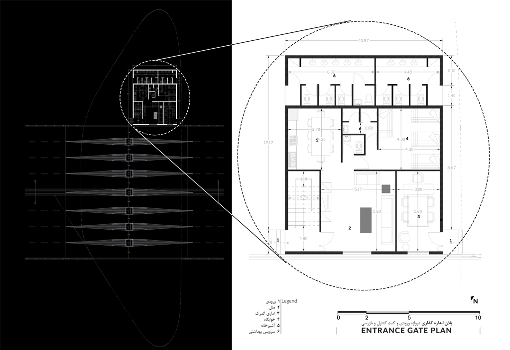 طراحی دروازه بر اساس نظام دسترسی سواره و پیاده، به گونهای که عبور روان خودروها و امنیت مسافران همزمان تأمین شود.