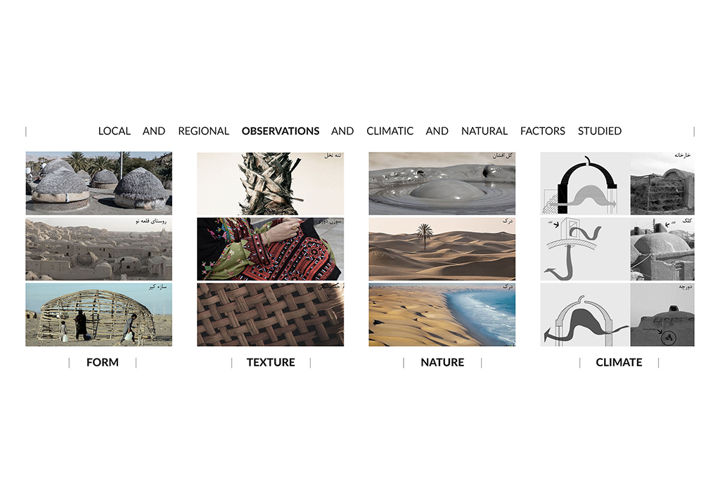 اگر دروازه شهر "عبور" را با نوعی تجربهگرایی به "حضور" تبدیل میکند، این اقامتگاه اما مجالی است برای افزایش کیفیت "حضور" و تبدیل آن به "خاطره". پروژه با الهام از هوشمندی معماری کوچنشینان سیستان و فرمهای ارگانیک تپههای شنی، به دنبال خلق یک "کاروانسرای معاصر" است. ایده اصلی، بازتعریف مفهوم "کپر"، "چادر" و "حیاط مرکزی" به عنوان کهنالگوهای سکونت در منطقه است، جایی که مسافر امروزی نه تنها اتراق میکند، بلکه در فضایی غوطهور در فرهنگ و اقلیم، "تجربه سکونت" میکند.