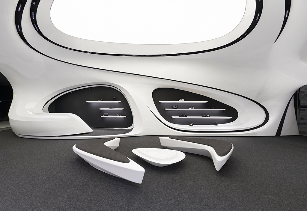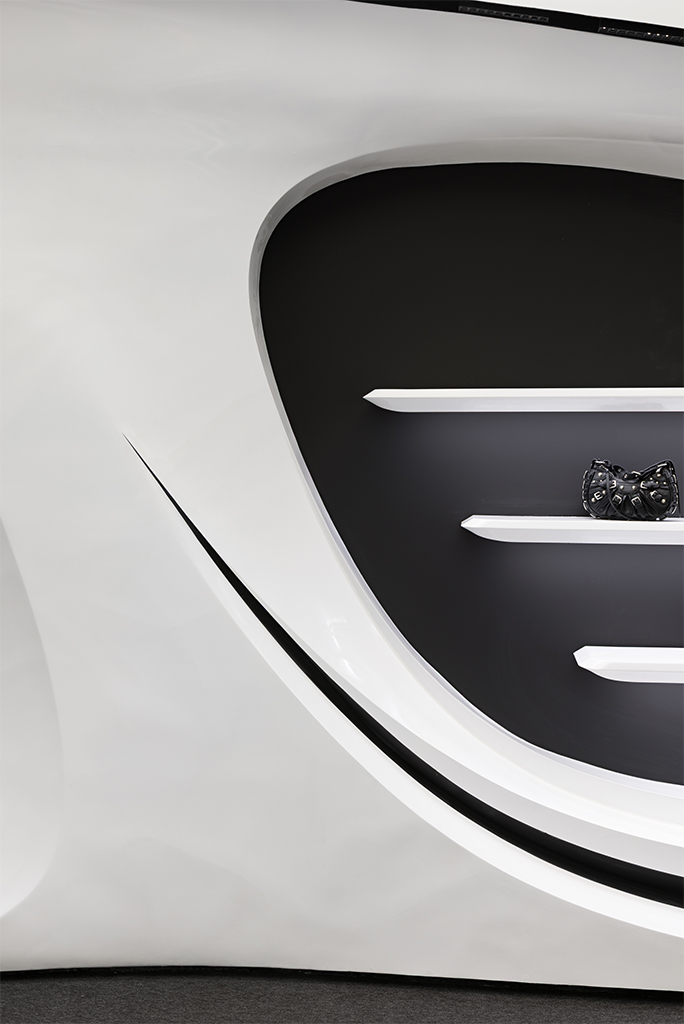 از طرفی با جدا شدن از سیتوپلاسم اصلی خود (پس زمینه) به سوژه اصلی، مستقل و روایتگر تبدیل میشود و از طرف دیگر با برداشتن مرزهای فیزیکی و کمرنگ کردن لبه، نقش اصلی را واگذار کرده و به یک میان افزار برای اتصال به پسزمینه و نمایش محصول تبدیل میشود تا تجربهای همزمان از ظرف و مظروف را به مخاطب ارائه کند و در عین حال بیانگر تفکر برند در خرق عادت و ایجاد تجربههای جدید برای مخاطب باشد.